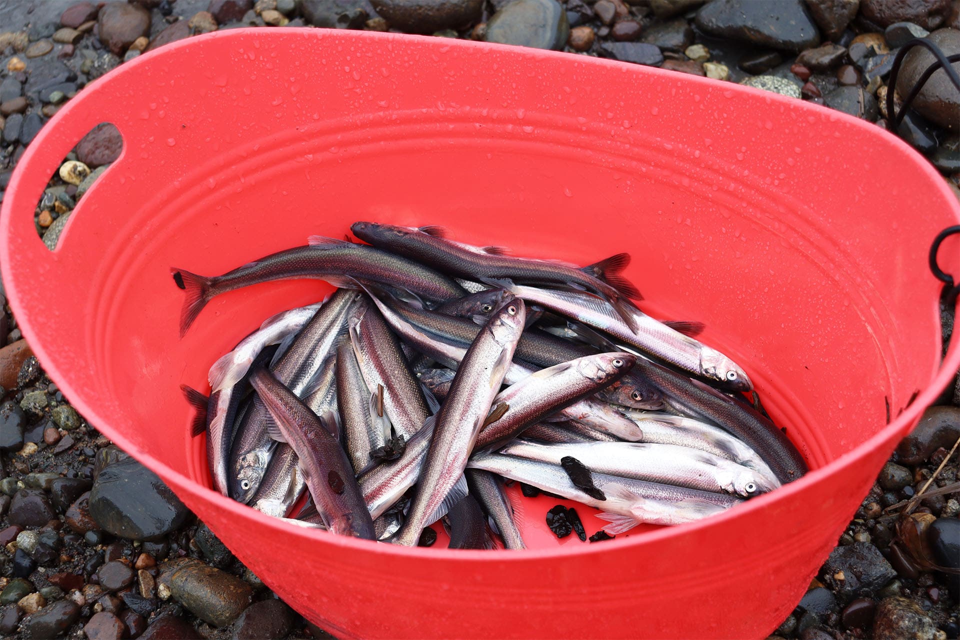Seeing the tradition up close was fascinating. One fisherwoman had brought her mother and young daughter along, who watched from the shoreline. It was a meaningful moment to see this cultural tradition being shared across generations. They even kindly allowed us to photograph their buckets filled with shimmering oolichan — an incredible sight up close.
