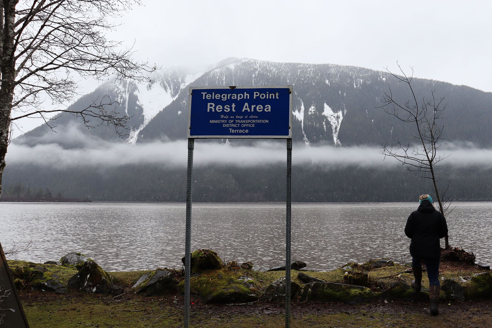 Next came the sign for Kasiks Wilderness Resort. Only one of us had visited before, and we were eager to stop there for a late lunch on the way back. We’ve heard wonderful things about their café and bakery. Unfortunately, the resort was closed that day, but we vowed to return in the spring to explore the grounds and dining facilities. It’s also a great marker to watch for — once you see it, you know you’re getting close to the oolichan activity.