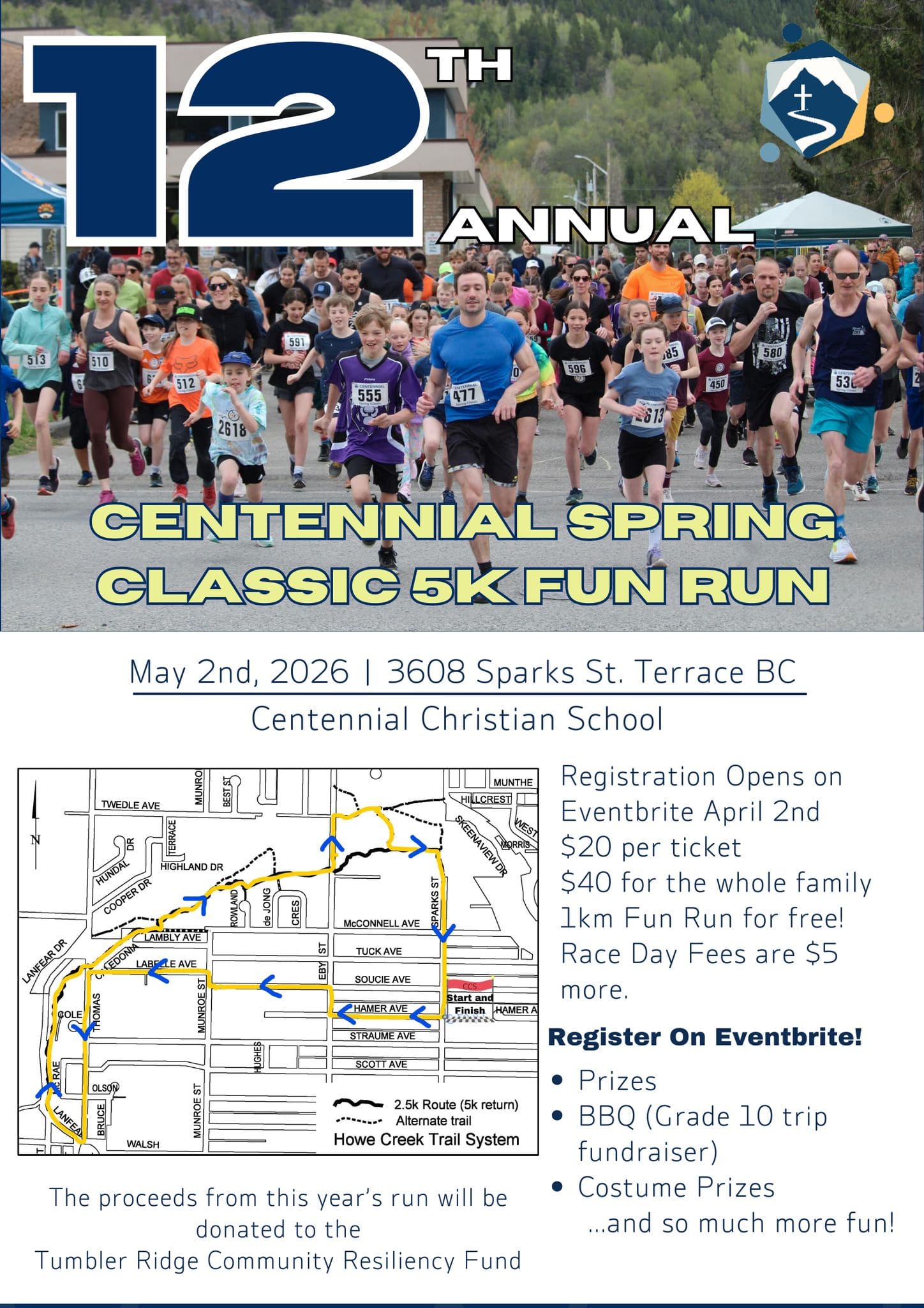 Welcome to the 12th Annual Centennial Spring Classic 5K! Lace up your running shoes and join us for a fun-filled morning of fitness and community. The event will take place on Sat, May 2nd, 2026 at 10:00 AM at Centennial Christian School.